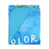 - Double-sided design features a coordinating solid shade