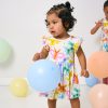 Get twirling. little party animals! The Balloon Bash Flutter Twirl Dress with Bodysuit features floaty friends in pastel hues. Made from breathable Soluxe? Bamboo with a hidden snappable bodysuit for easy changes. this dress for girls has flutter details and a full twirl-worthy skirt. Perfect for birthday parties. special occasions. and the sweetest family photos!