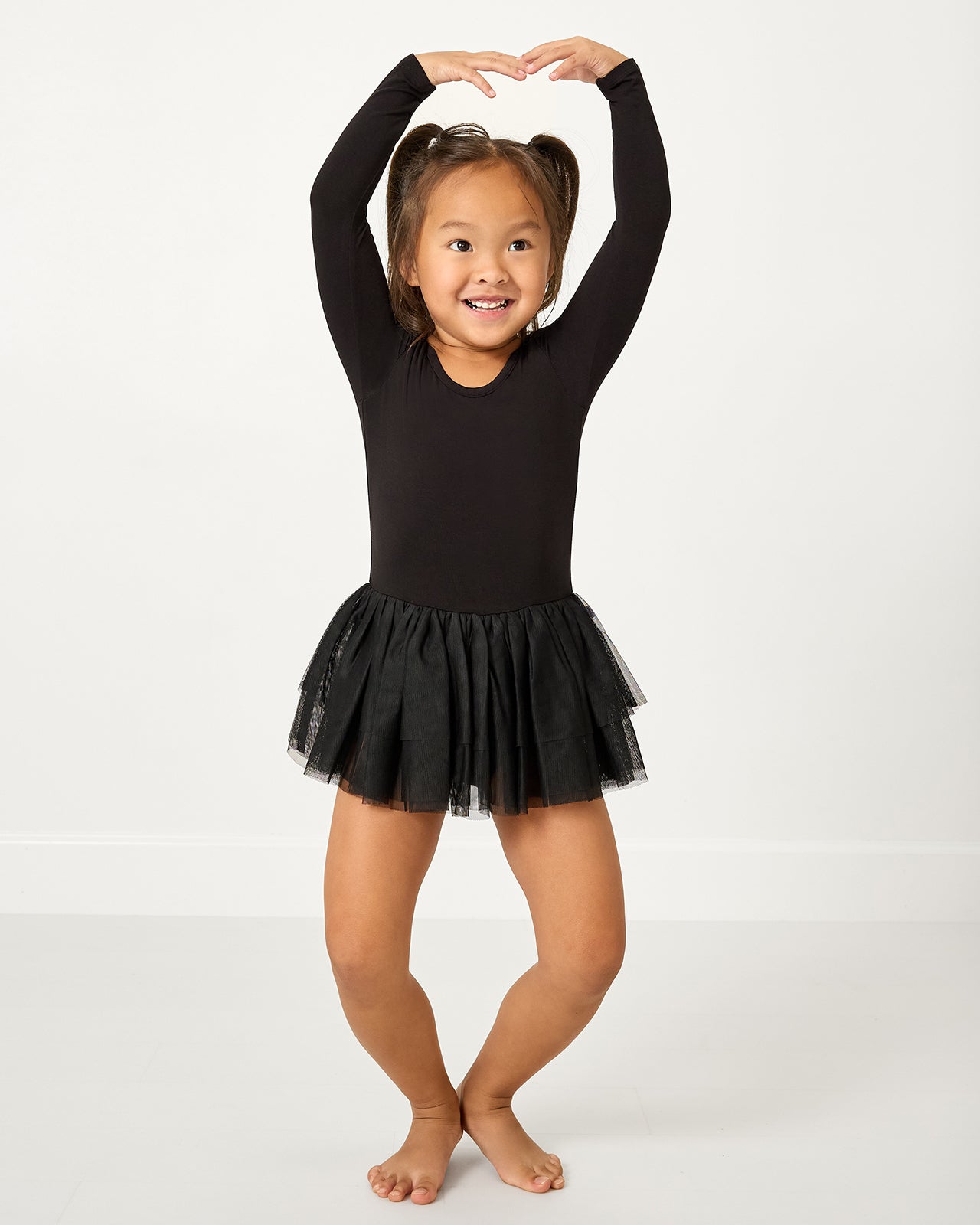 Plié perfection. This girls dress features a ballet-inspired leotard bodice with three-tiered tulle mesh skirt over soft Soluxe® Bamboo fabric. With a fully lined leotard and scoop neckline. it’s perfect for your little aspiring ballerina. Pair with leggings for a look that’s en pointe!