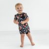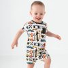 A little bit county. a lot comfy! This baby romper showcases adorable barnyard friends on a cheerful teal blue backdrop. Made from durable Soluxe? Bamboo. the Farm Fam Pocket Shorty Romper features a front pocket and hidden snaps for easy changes. Relaxed fit means comfort that lasts from sunrise to sunset. Don’t forget matching styles for sweet sibling moments!