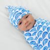This Swaddle Set is oh-so dreamy! Featuring calming blue rainbows on a white background and made from our signature Lunaluxe? Bamboo. it’s ideal for swaddling. but so versatile that it can be used as a car seat cover. nursing wrap. play mat and more. The matching hat will have your little one ready for the cutest photo ops!