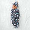 Love you to the moon and back! This charming Swaddle Set features blue moons. stars and planets in deep gray skies. Made from our signature Lunaluxe? Bamboo. it’s ideal for swaddling. but so versatile that it can be used as a car seat cover. nursing wrap. play mat and more. This newborn set comes with a matching hat. so you’ll have the cutest little dreamer around!