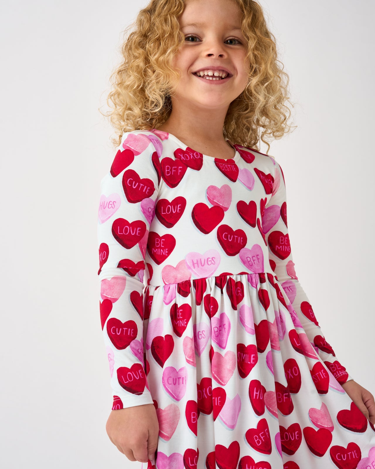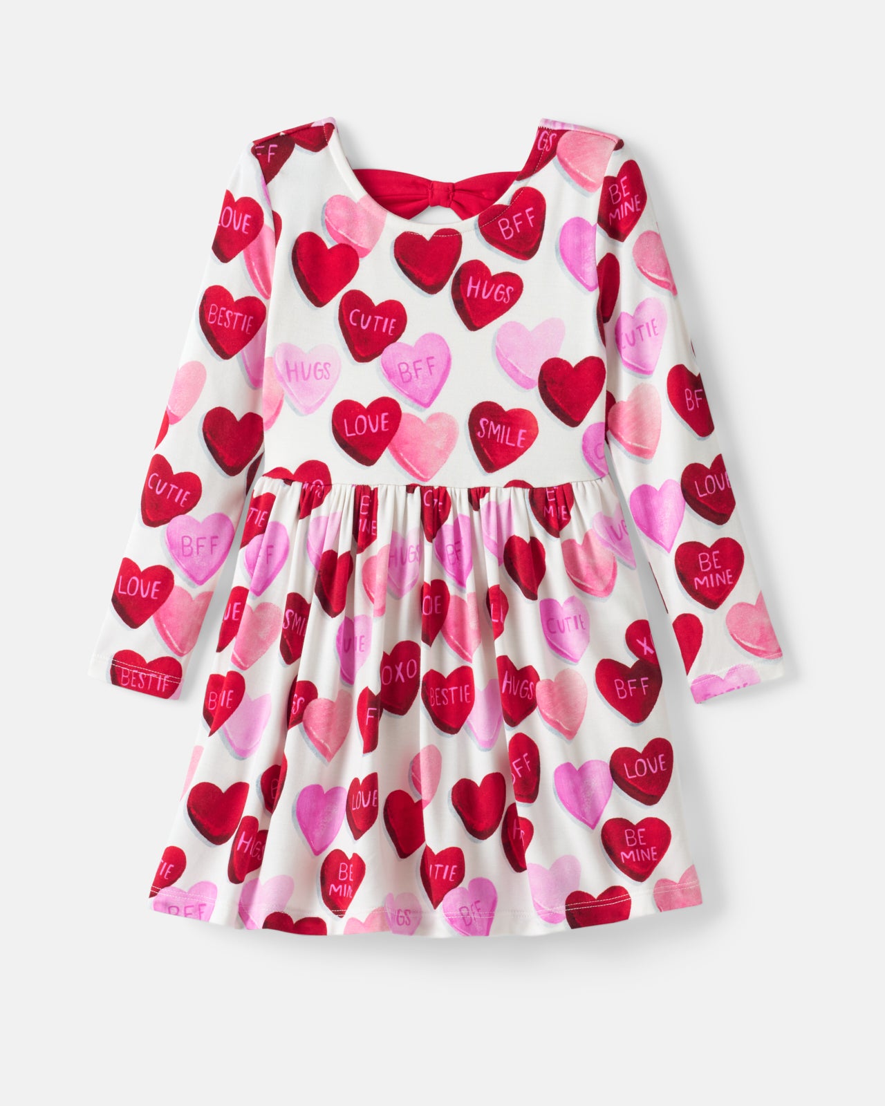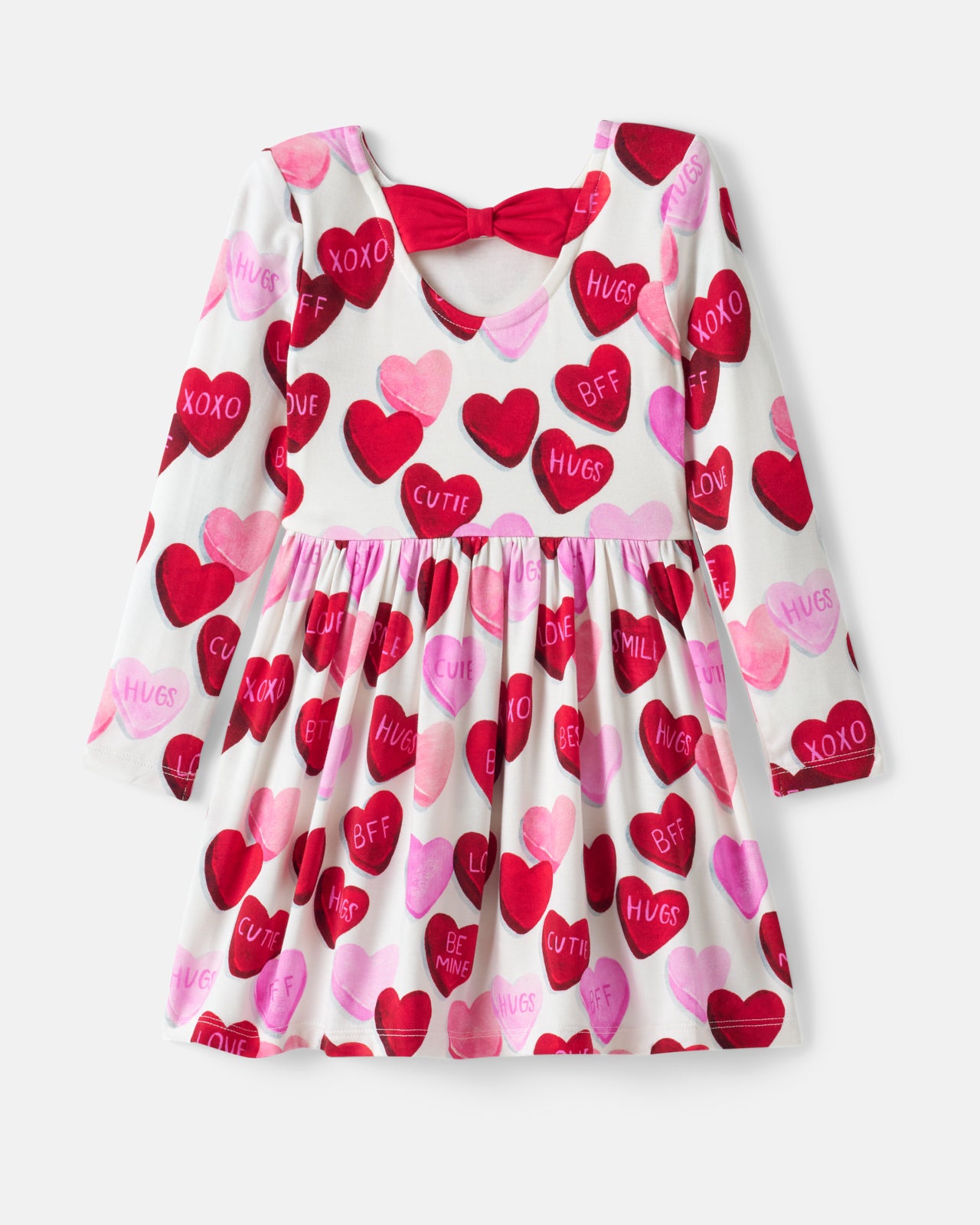 Cupid approved! The Candy Cuties Bow Back Skater Dress features sweet conversation hearts in classic Valentine’s Day colors on soft and durable Soluxe® Bamboo. This girls dress has an adorable bow-back detail and two side pockets for storing tiny valentines. Grab it for sibling matching!