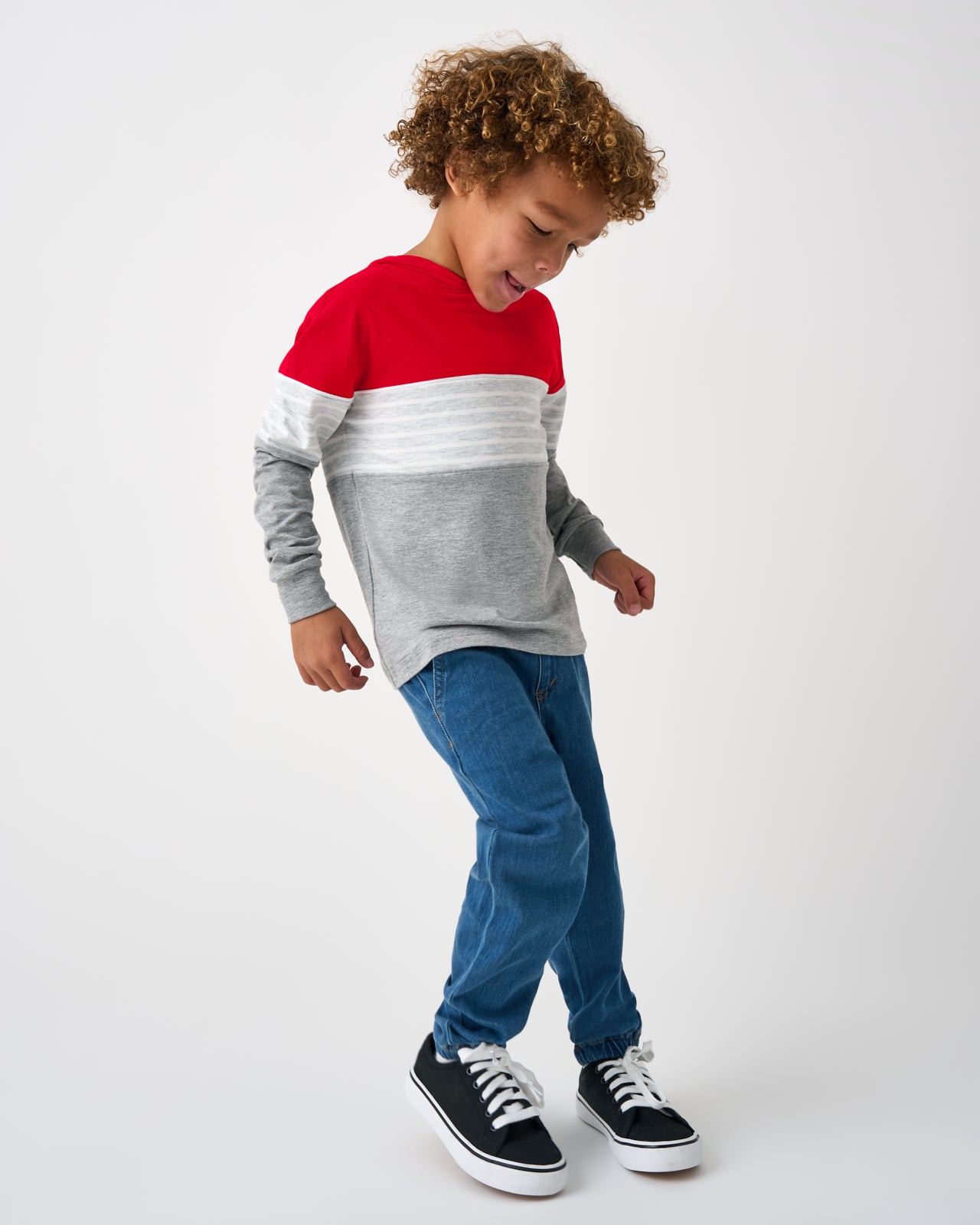 Give it your heart! The Candy Red Colorblock Hooded Tee features a cool colorblock design on super-soft and durable Soluxe® Bamboo. This kids hoodie has a three-piece hood. thumbholes at the cuffs. and a relaxed fit perfect for layering. Mix & match with their fave LS bottoms!