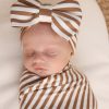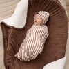Keep baby cozy. from day one. The Chestnut Brown Stripe Swaddle & Luxe Bow Set is made from soft bamboo that’s breathable. hypoallergenic. and gentle on sensitive newborn skin. Its oversized design is so versatile and perfect for tummy time. The matching Luxe Bow adds a photo-worthy touch. Just the perfect baby shower gift!