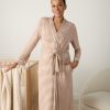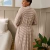 A must-have for mama! This silky soft bamboo Chestnut Brown Stripe Robe features a relaxed silhouette with a removable belt and inner tie closure for the perfect fit. The stripes add timeless charm. while two side pockets keep your essentials close. With its tagless design. this dreamy robe is perfect for hospital homecomings. slow Sunday mornings. and matching with your littlest love.