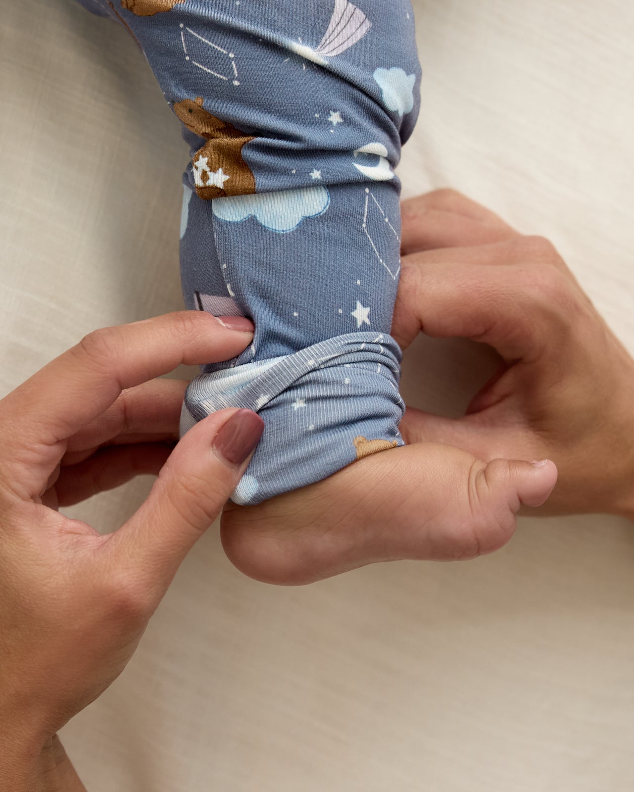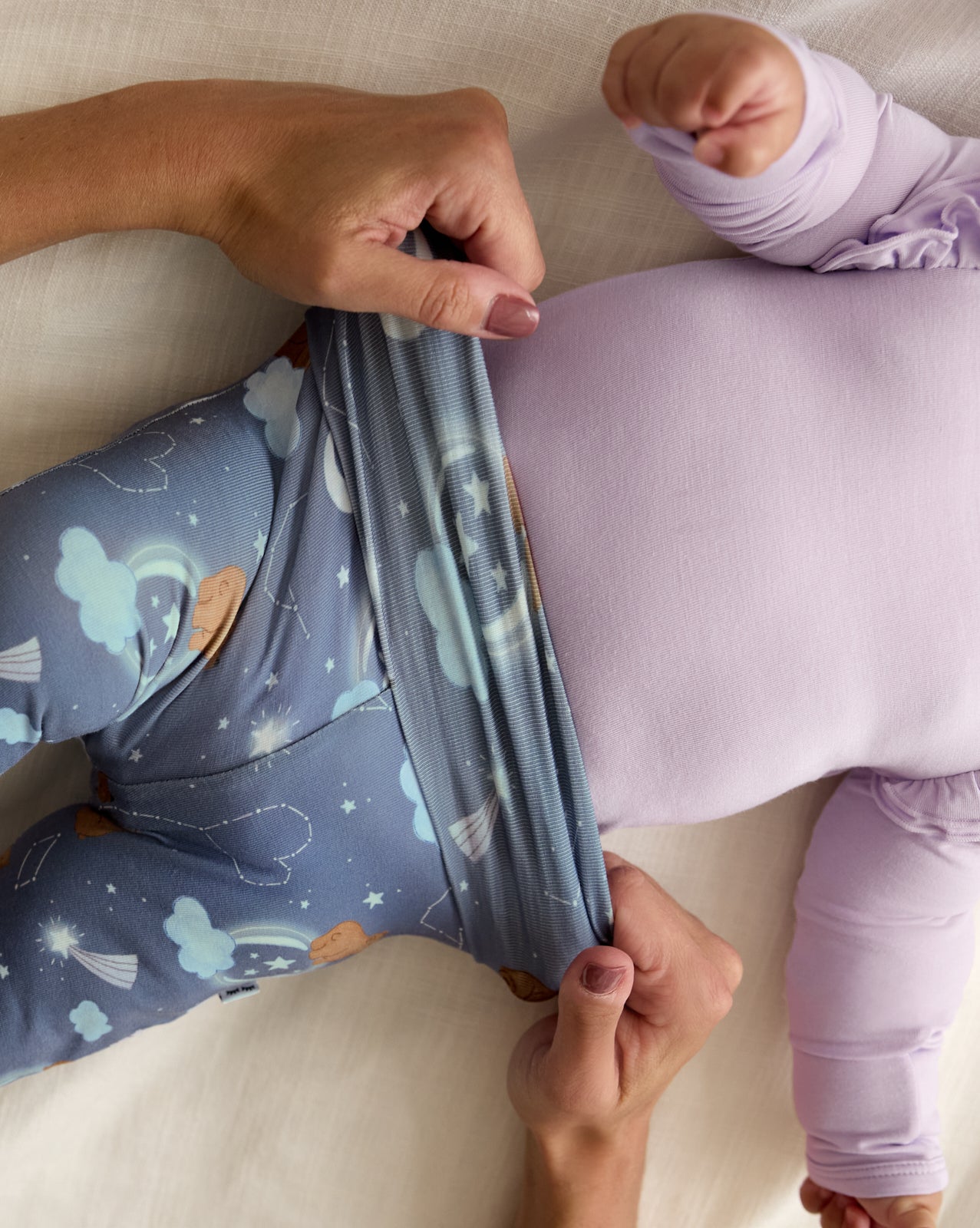 An essential for those precious early days. Our Constellation Cubs Fold-Over Leggings are made with durable bamboo. complete with an adjustable fold-over waistband that’s perfect for healing belly buttons. The fold-over foot cuffs keep tiny toes warm. while the tagless design protects even the most sensitive skin. Mix & match with your fave Hazy Blue or Constellation Cubs styles!