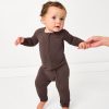 Dreams as sweet as chocolate! The Dark Chocolate Zippy is made from buttery soft Lunaluxe® Bamboo in a solid deep brown. With fold-over mittens. convertible foot cuffs. and a double zipper for easy changes. it’s perfect for fall snuggles. This bamboo baby sleeper is designed with extra length so it’ll fit your little one all season long and beyond. Grab matching styles for cozy cuddles with the fam!