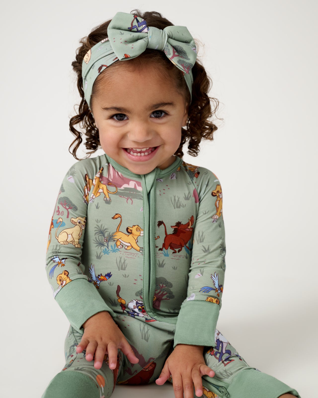 The cutest topper for your little cub! This Disney’s The Lion King Simba’s Safari Luxe Bow Headband features Disney’s Simba and friends exploring the land in a sage green colorway. Made from ultra-soft Lunaluxe® Bamboo that’s gentle on sensitive skin. this Disney’s The Lion King sweet bow headband has real loops and never needs tying. Perfect for mix & matching with their fave LS styles!
