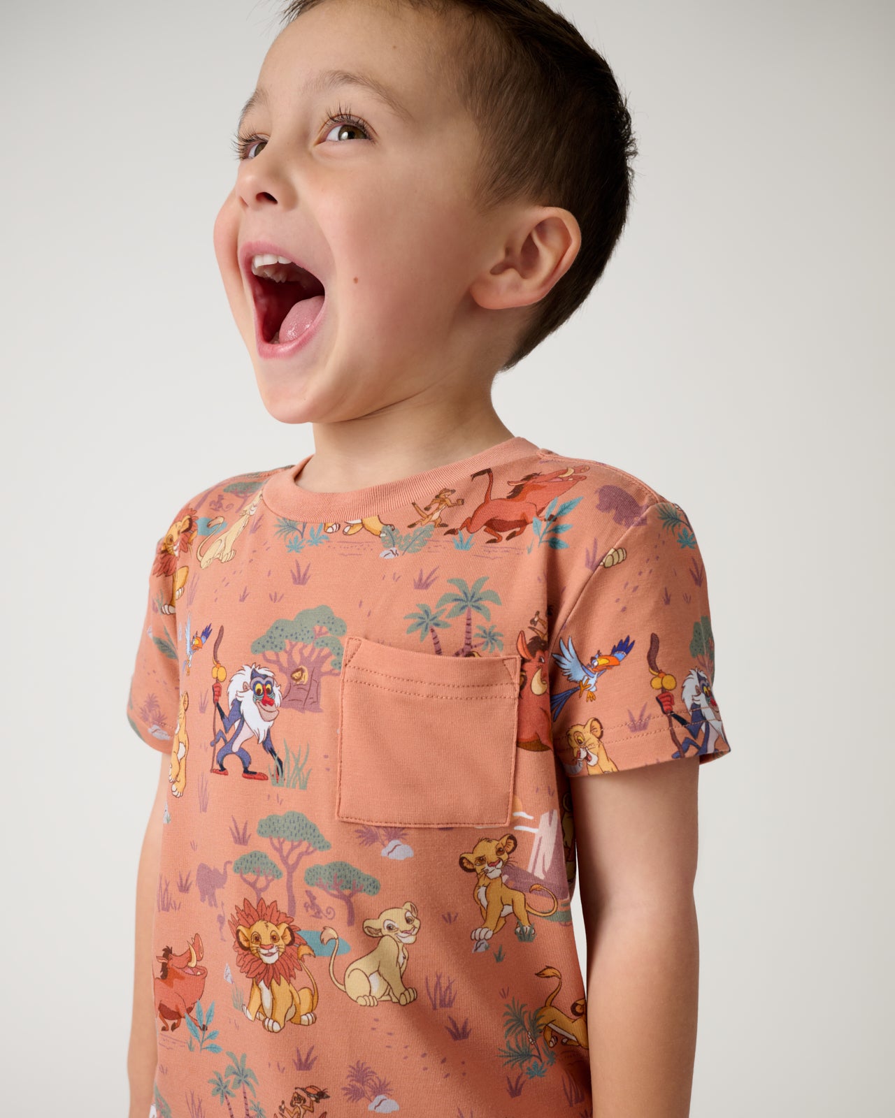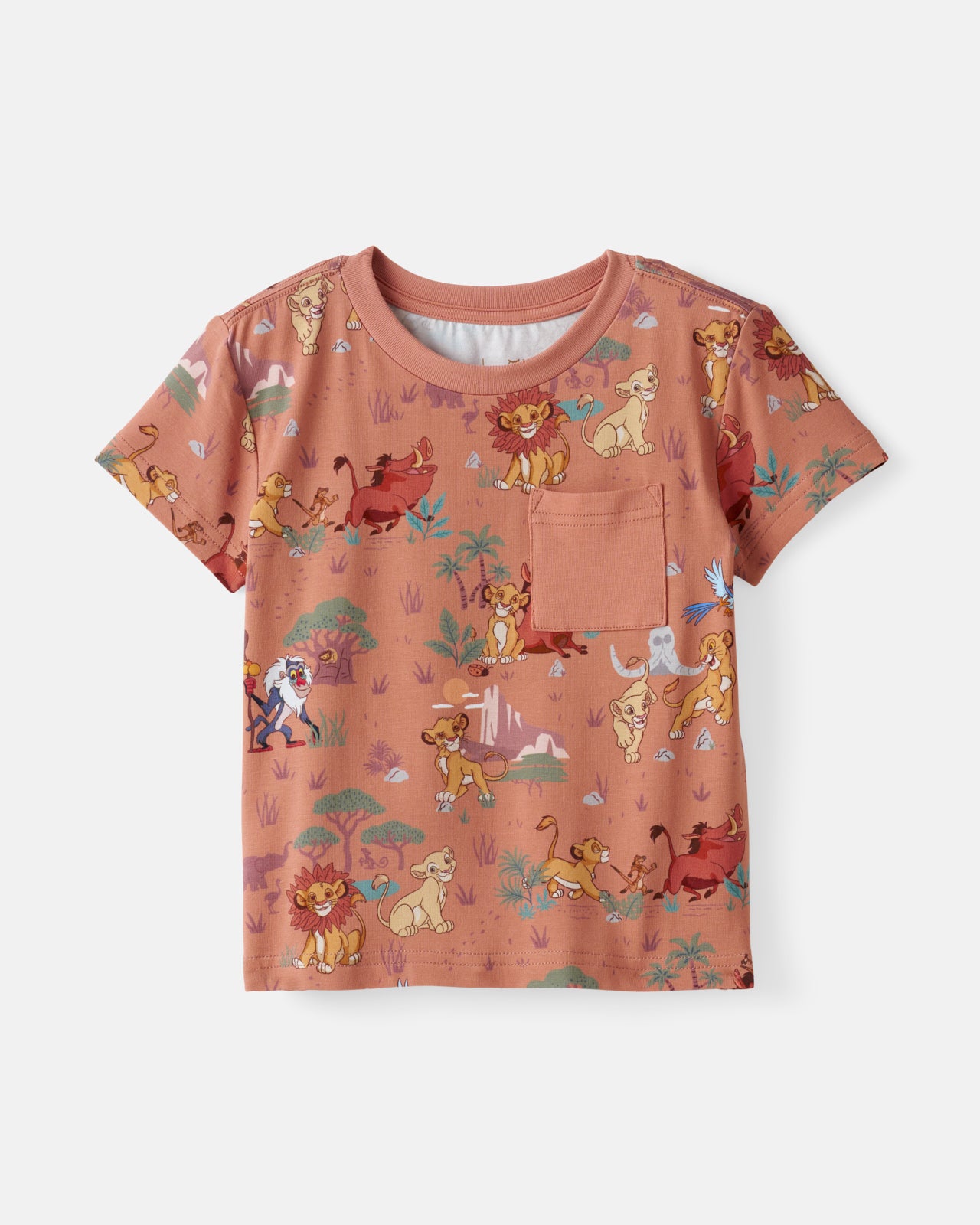 Conquer the playground. This Disney Simba’s Safari Relaxed Pocket Tee features Disney’s Simba and friends in an adorable rust colorway with a front pocket for treasures. Made from durable Soluxe? Bamboo. this Disney’s The Lion King boys t shirt has a relaxed fit with room to pounce and play. Mix & match with their fave LS bottoms!