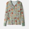 - Henley snap-front placket for easy nursing access