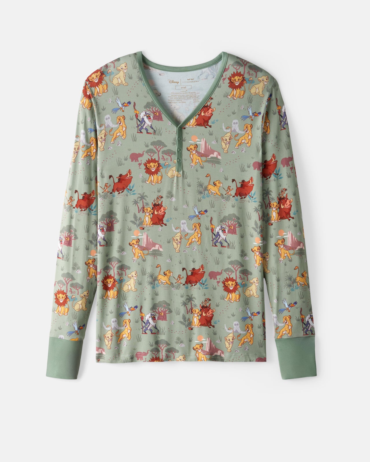 Time for sweet safari dreams with Disney’s The Lion King! This Disney Simba’s Safari Women’s Pajama Top features Disney’s Simba and friends exploring the land in a sage green colorway. Made from ultra-soft Lunaluxe® Bamboo. this women’s bamboo pajama top has a relaxed V-neck with front snaps for easy nursing access. Pair it with the matching pants to make a set. then snag styles for the kiddos. too!
