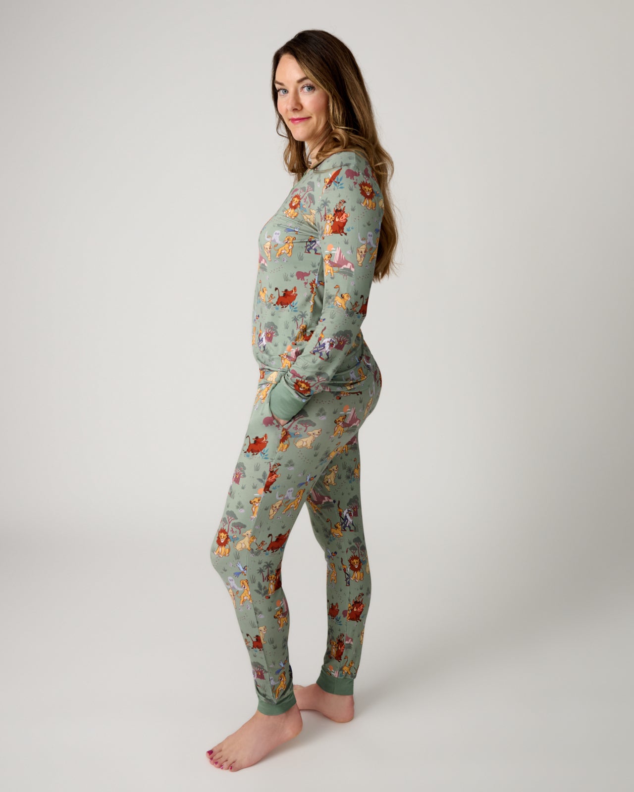 Time for sweet safari dreams with Disney’s The Lion King! Made from ultra-soft Lunaluxe® Bamboo in a sage green colorway. these women’s bamboo pajama pants feature Disney’s Simba and friends exploring the land. With deep side pockets and a bump-friendly waistband. they’re comfy for every season. Pair them with the matching top to make a set. or swap in your fave LS solid tee!