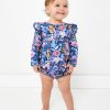 Let’s get blooming! The Dusk Blooms Bubble Romper features a whimsical wildflower print on soft Soluxe® Bamboo. With sweet flutter sleeves. this baby romper has ruffle details at the bum and legs and a snappable bottom for easy changes. Grab matching styles for sibling moments!