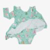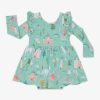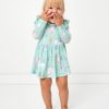 Make every day a fairytale! The Enchanted Fairytale Flutter Twirl Dress with Bodysuit features whimsical unicorns. princesses. and pink castles on super-soft Soluxe? Bamboo. This toddler dress has flutter sleeves. a twirly-skirt. and hidden snappable bodysuit for easy changes. Perfect for princess parties and sibling matching!