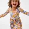 Let’s play princesses! The Enchanted Fairytale Flutter Twirl Dress features whimsical unicorns. princesses. and pink castles on super-soft Soluxe® Bamboo. This girls dress has flutter sleeves. a full skirt made for twirling. and two side pockets for storing treasures. Perfect for make-believe adventures and sibling matching!