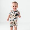 Start your engines ?? it’s time to Play! Featuring race cars. checkered flags. and finish lines. it’s crafted from soft and durable Soluxe? Bamboo that’s gentle on sensitive skin and made for all-day adventures. With hidden snaps for quick changes and a relaxed fit. this romper is as comfy as it is cute ?? ready for a day of racing (or dreaming)!