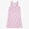 Flower Power features sleepy and smiley daisies on a light purple background. The trim is matching light purple.