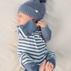 Welcome baby in comfort. The Hazy Blue Stripe Crescent Zippy is made with ultra soft bamboo that’s gentle on delicate skin. Featuring fold-over mittens for scratch-free sleep and convertible foot cuffs to keep toes warm. The U-shaped double zipper makes diaper changes quick. while lap shoulders ensure easy dressing. Tagless and seamless. these adorable bamboo baby pajamas grow with littles.