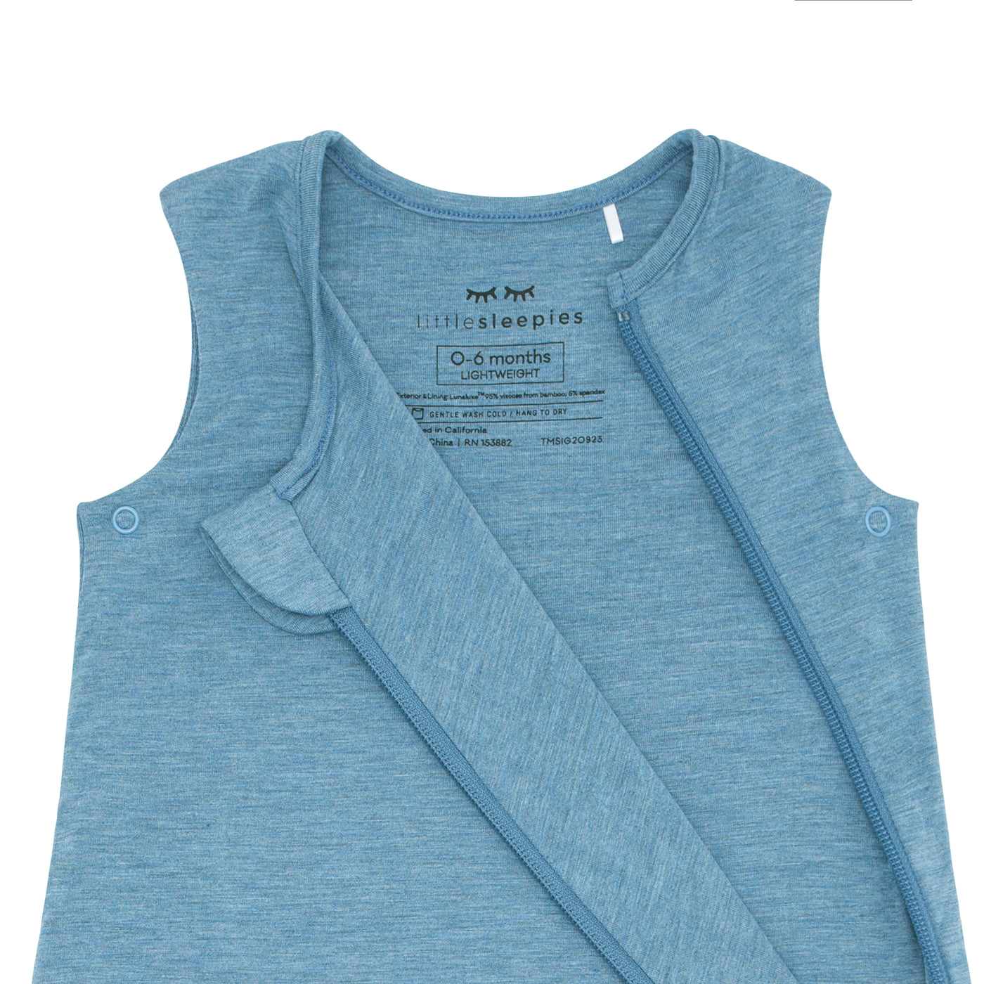 Get your baby set for the sweetest dreams with our best selling Sleepy Bag in Heather Blue. Made from buttery soft Lunaluxe® Bamboo. this sleep sack is designed with extra length for longer wear and cozier nights. Featuring a front zipper and adjustable snaps under the arms for added convenience and easy changes. Choose from three weights for restful sleep. no matter the temps!