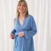 Our women’s robes are designed for each stage of mama-hood ?? but also. just everyday coziness! Made from buttery soft Lunaluxe? Bamboo. this comfy Heather Blue Robe has deep pockets for all your essentials. an adjustable belt. and contrast piping for a cute and classic look.