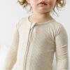 A neutral hue that’s a must-have in your PJ rotation! Made from our signature Lunaluxe® Bamboo. this Heather Oatmeal one piece zipper pajama features a ribbed texture that’s oh-so cozy. It boasts thoughtful features like fold-over feet & mittens. a 2-way zipper and no scratchy tags. Don’t forget a matching Luxe Bow!