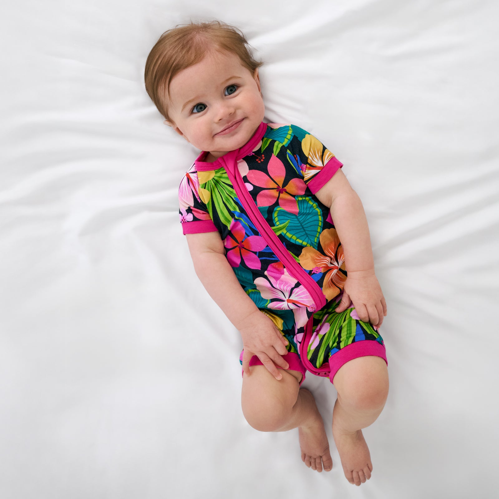 Welcome to pajama paradise! The Jungle Blooms Shorty Zippy is blooming with tropical florals and bold colors in our signature Lunaluxe® Bamboo. It’s oh-so soft with thoughtful details. like a convenient double zipper for easy changes! No snaps. no fuss ??just island vibes all the time!