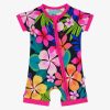The Jungle Blooms print features bright flowers and foliage blooming across a black background. The trim is bright magenta.