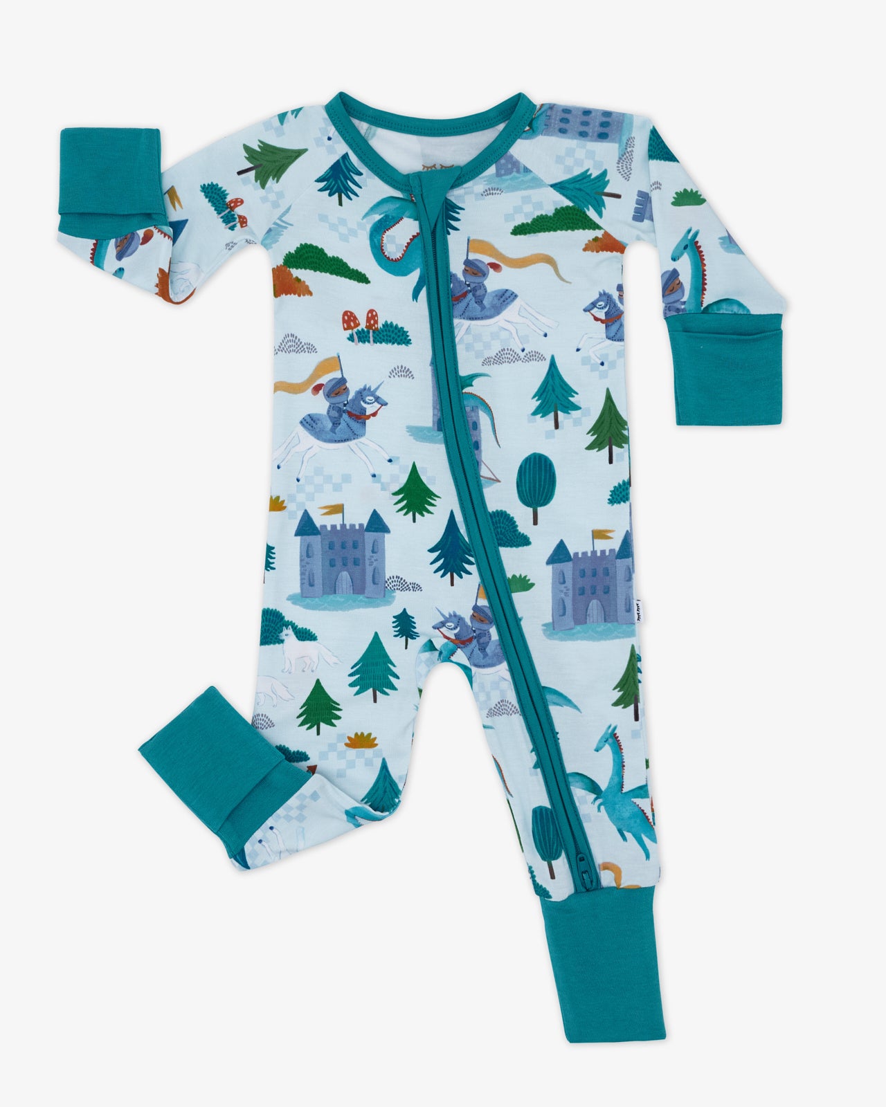 Quest for the coziest dreams! The Knight’s Quest Zippy features knights. dragons. and castles that will inspire your little hero’s bedtime adventures. Made from buttery soft Lunaluxe® Bamboo that’s gentle on sensitive skin. this bamboo baby sleeper keeps them comfy with fold-over mittens. convertible foot cuffs. and an easy double zipper. Perfect for family matching!