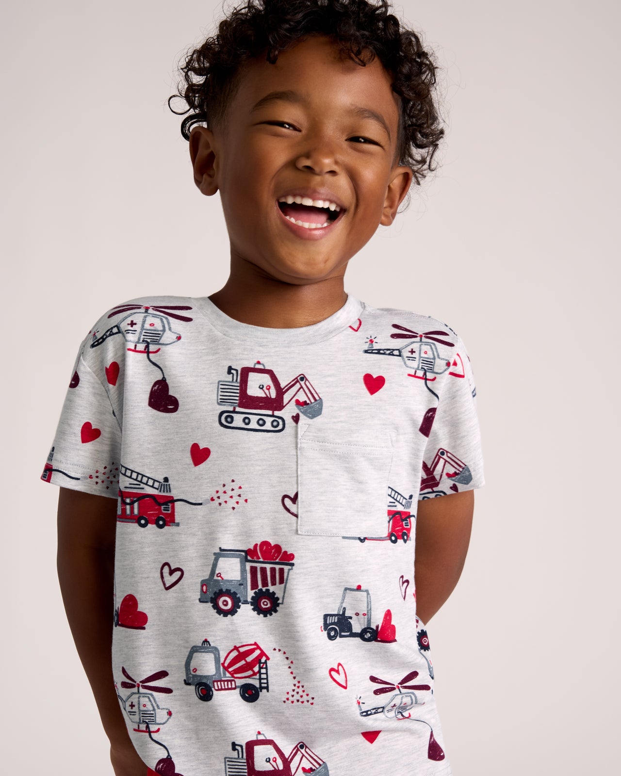 Love in motion! The Loads of Love Relaxed Pocket Tee features adorable trucks hauling hearts on super-soft and durable Soluxe® Bamboo. This boys t shirt has a front pocket for treasures and a relaxed fit with room to move. Mix & match with the Candy Red Jogger for Valentine’s Day fun!