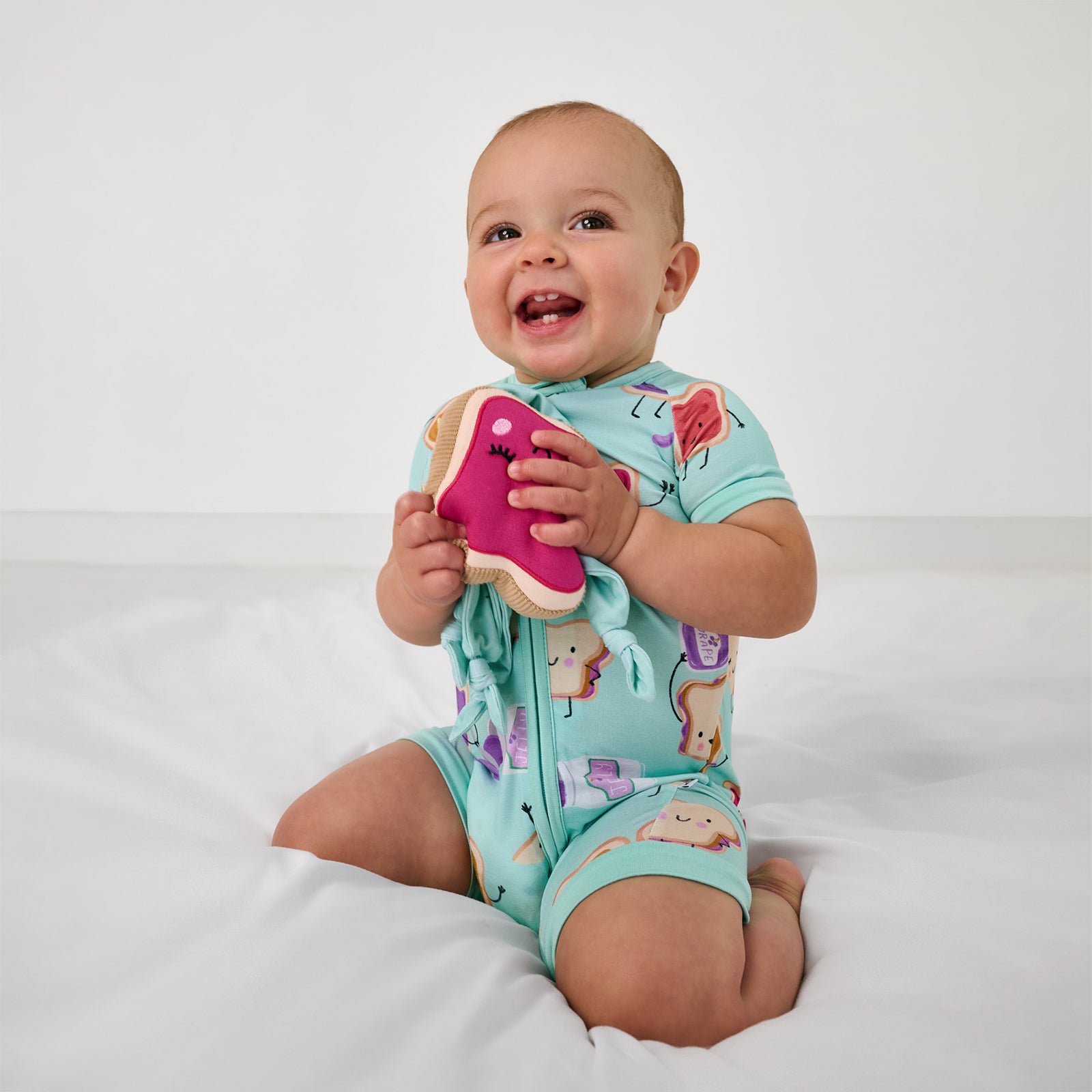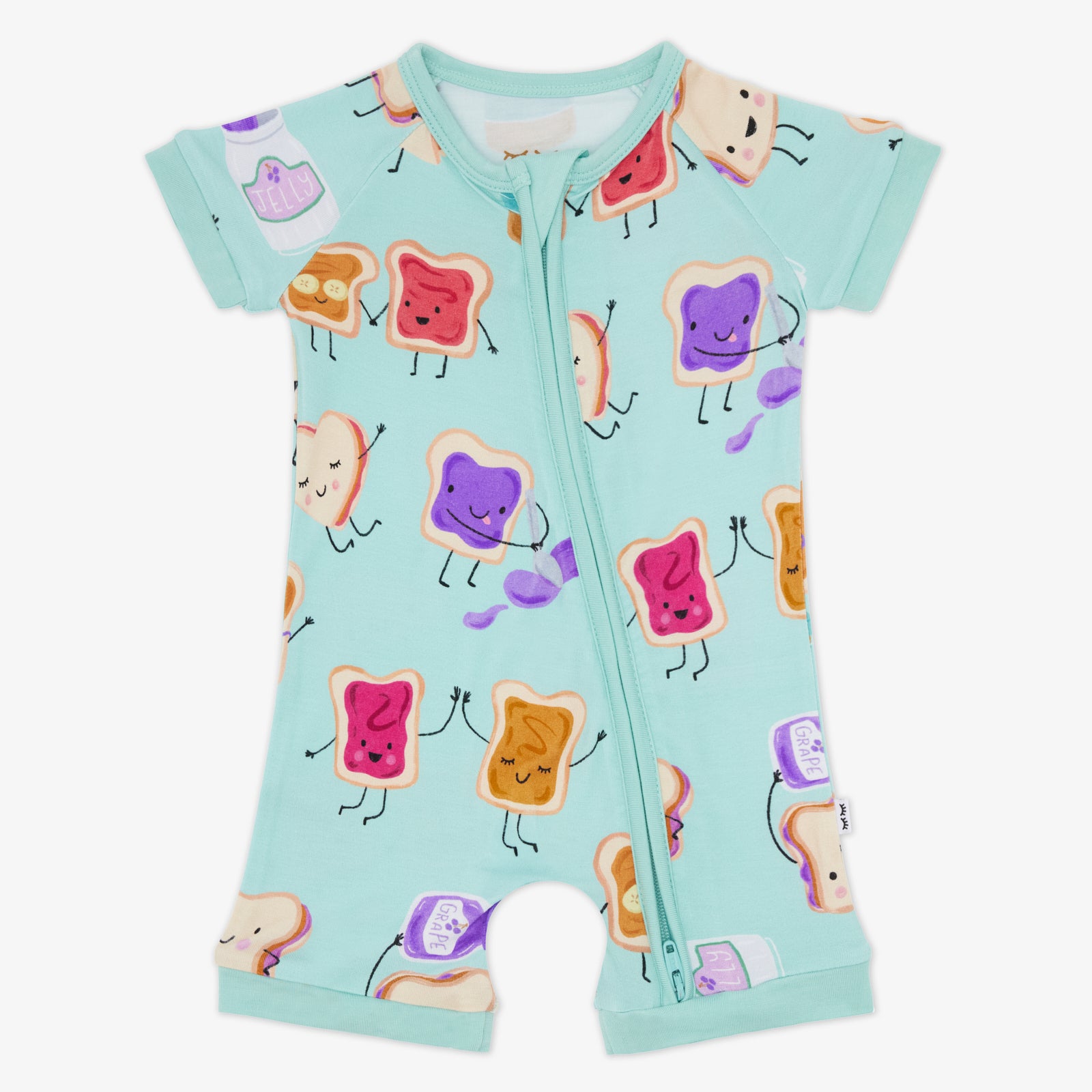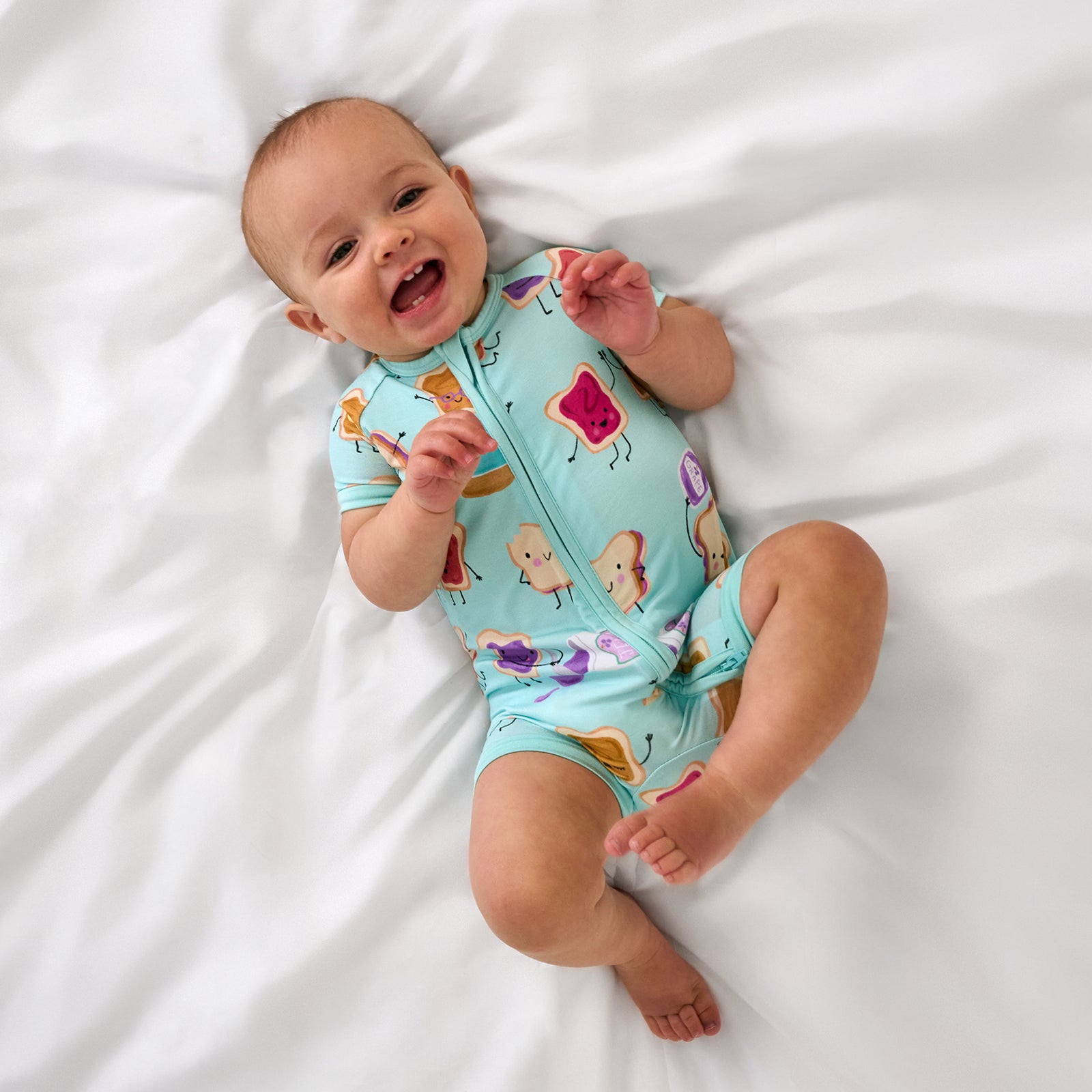 The sweetest jammies and sammies! This bamboo baby sleeper is here to spread smiles. Made from buttery soft Lunaluxe® Bamboo. our Lunch Buddies Shorty Zippy is always gentle on sensitive skin. With a convenient double zipper and short style perfect for warmer weather. it’s love at first bite. Grab matching styles for the whole fam!