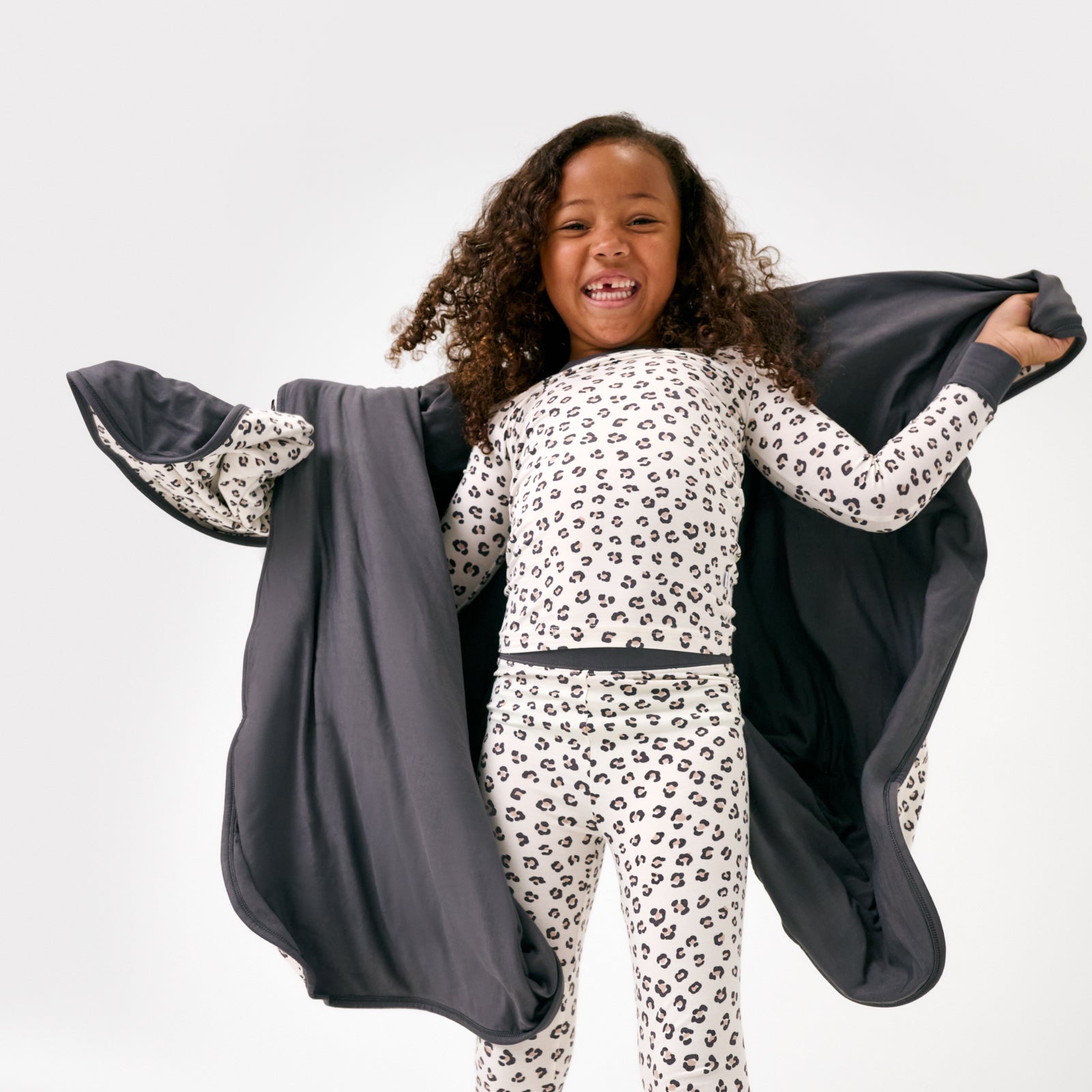 Pure purr-fection! The Luxe Leopard Large Cloud Blanket features triple-layered Lunaluxe® Bamboo for buttery soft comfort. With a generous size and double-sided design (hello. coordinating solid!). its seasonless snuggle power makes it a cozy necessity ??at home or on the prowl. We love to use it as a Play mat or picnic blanket!