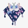 Mira the Butterfly Sleepyhead Lovey features a blue and purple jewel toned plush top in the shape of a butterfly. The attached security blanket is navy blue with butterflies in purple and blue jewel tones.