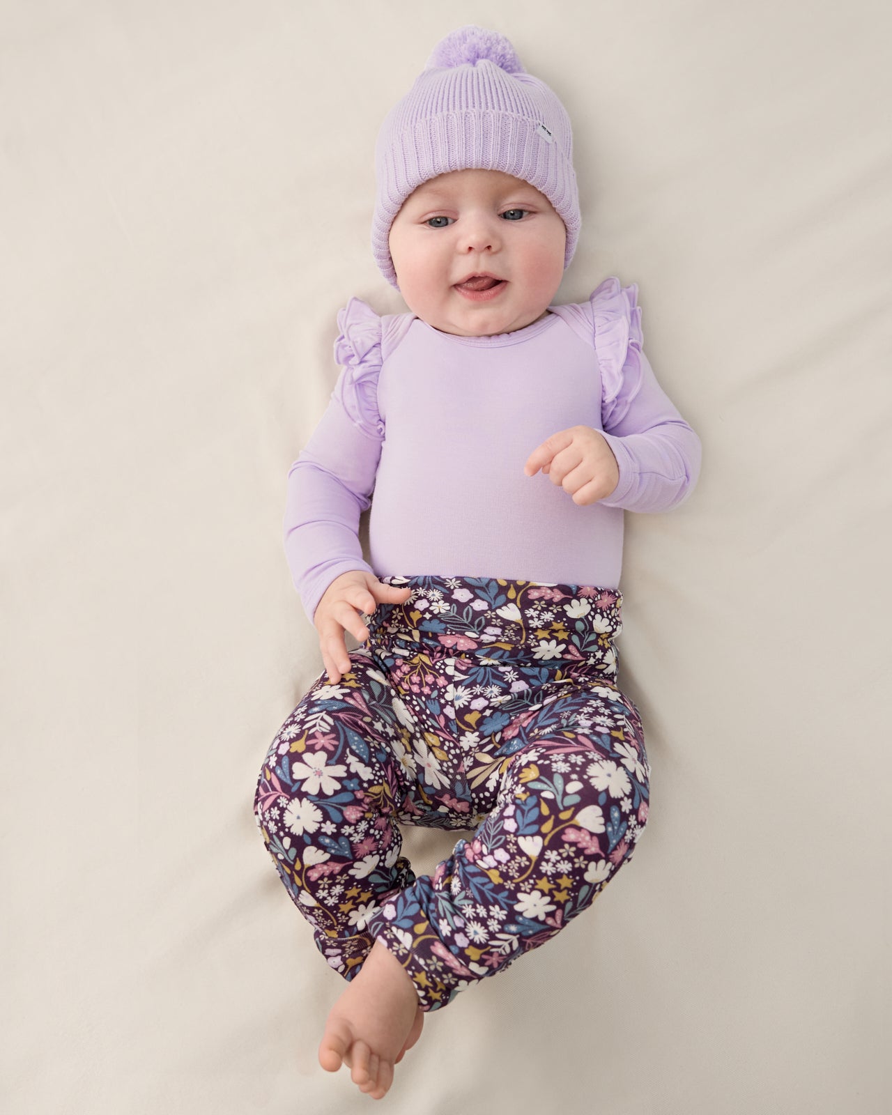 Precious first winter outings just got cuter. Our Misty Lavender Sweater Beanie is made from a super soft. durable bamboo blend in a chunky sweater knit. It’s breathable. hypoallergenic. and gentle on delicate newborn skin. Featuring a fold-over brim. it adjusts to little heads of all sizes. Mix & match it with your fave Misty Lavender styles.
