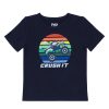 Your little monster truck enthusiast will be obsessed with this layer! Featuring blue. red and green trucks racing across a dark navy background. with fun faces inspired by dragons. crocs. sharks and rhinos. Made from our comfy and durable Soluxe®??Bamboo. with thoughtful details like thumbholes and a relaxed. cool-kid fit!