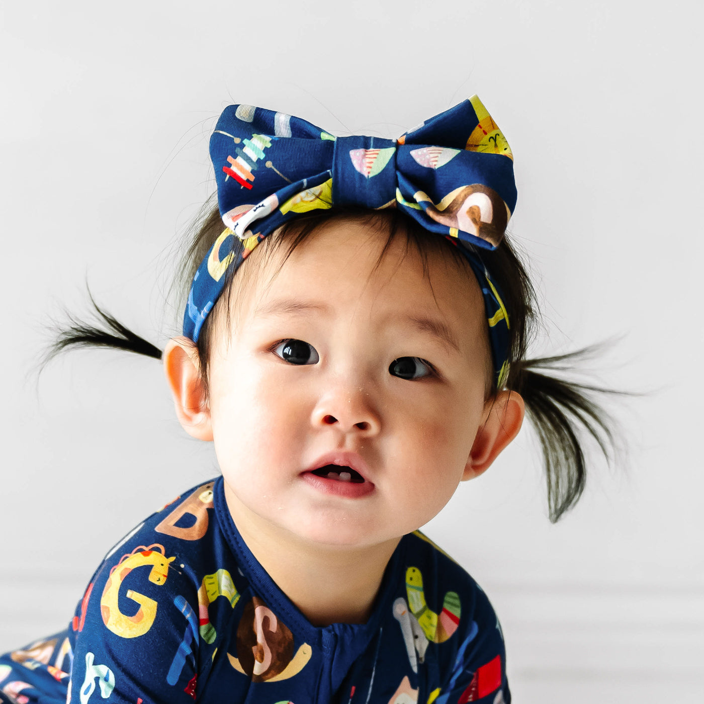 L is for Luxe Bow! Featuring stylized letters with details your little one will love. this Alphabet Friends headband is the perfect finishing touch for their outfit. Made from buttery soft and stretchy Lunaluxe? Bamboo. it has real loops that never need tying. Pair it with matching styles or your fave solid colored outfit for the cutest photos!