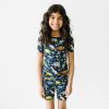 Your little dino-lover will roar with excitement over this print! Featuring all their prehistoric favorites on a bold navy blue background to inspire adventurous dreams. Made from buttery soft Lunaluxe® Bamboo. in a short sleeve & shorts style that’s perfect for warmer weather. Grab matching styles for the whole fam!