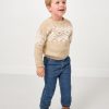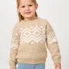 Sweater weather is here! The Frosty Fair Isle Sweater features a neutral toned geometric Fair Isle pattern on a cozy plush sweater yarn blend. With a sensory-friendly sewn-in tag and relaxed fit. they’ll stay comfy all day. Pair it with their fave LS bottoms. then grab a matching Adult Sweater for you. too!