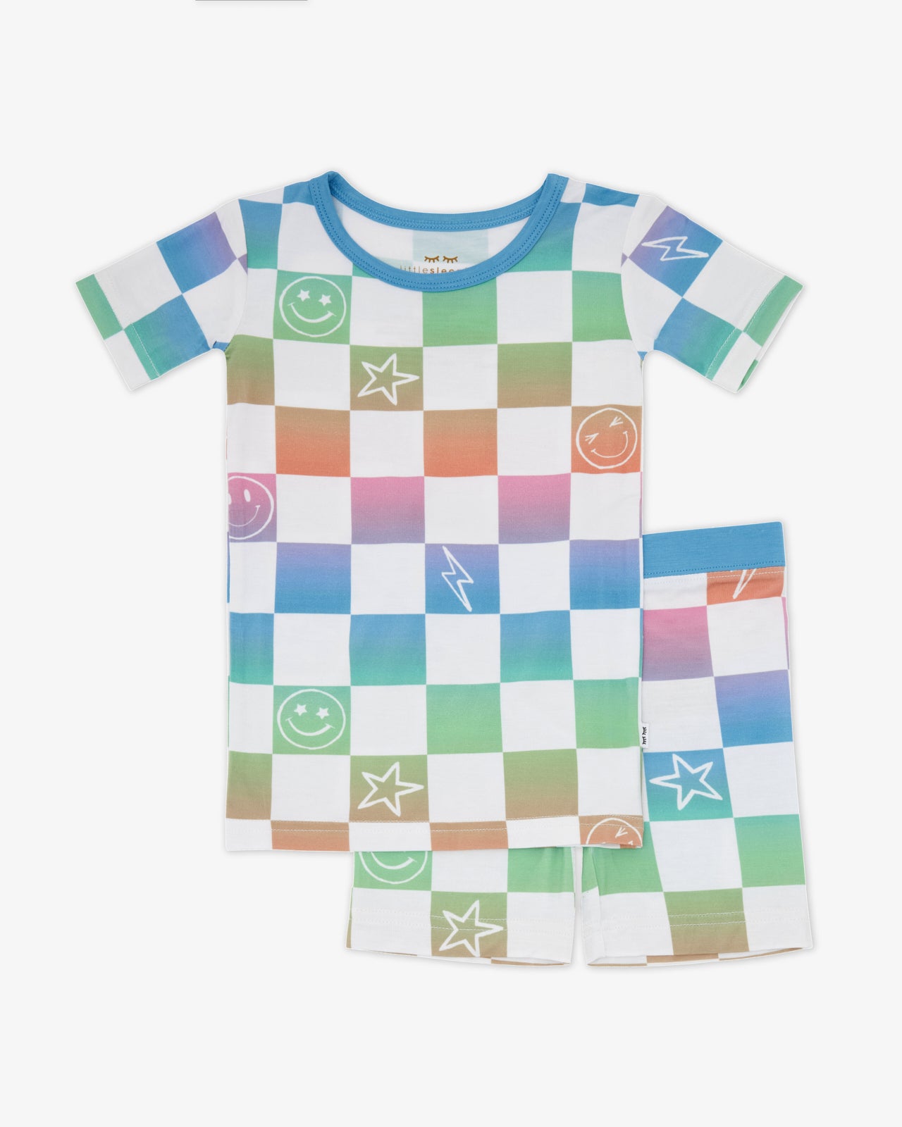Check it out! The Ombré Cheery Checks Two-Piece Pajama Set features gradient rainbow checks with playful details. Made from our signature Lunaluxe® Bamboo. the short-sleeve top and matching bottoms are ultra-soft with no scratchy tags. Grab the matching Cloud Blanket® for more cheer!