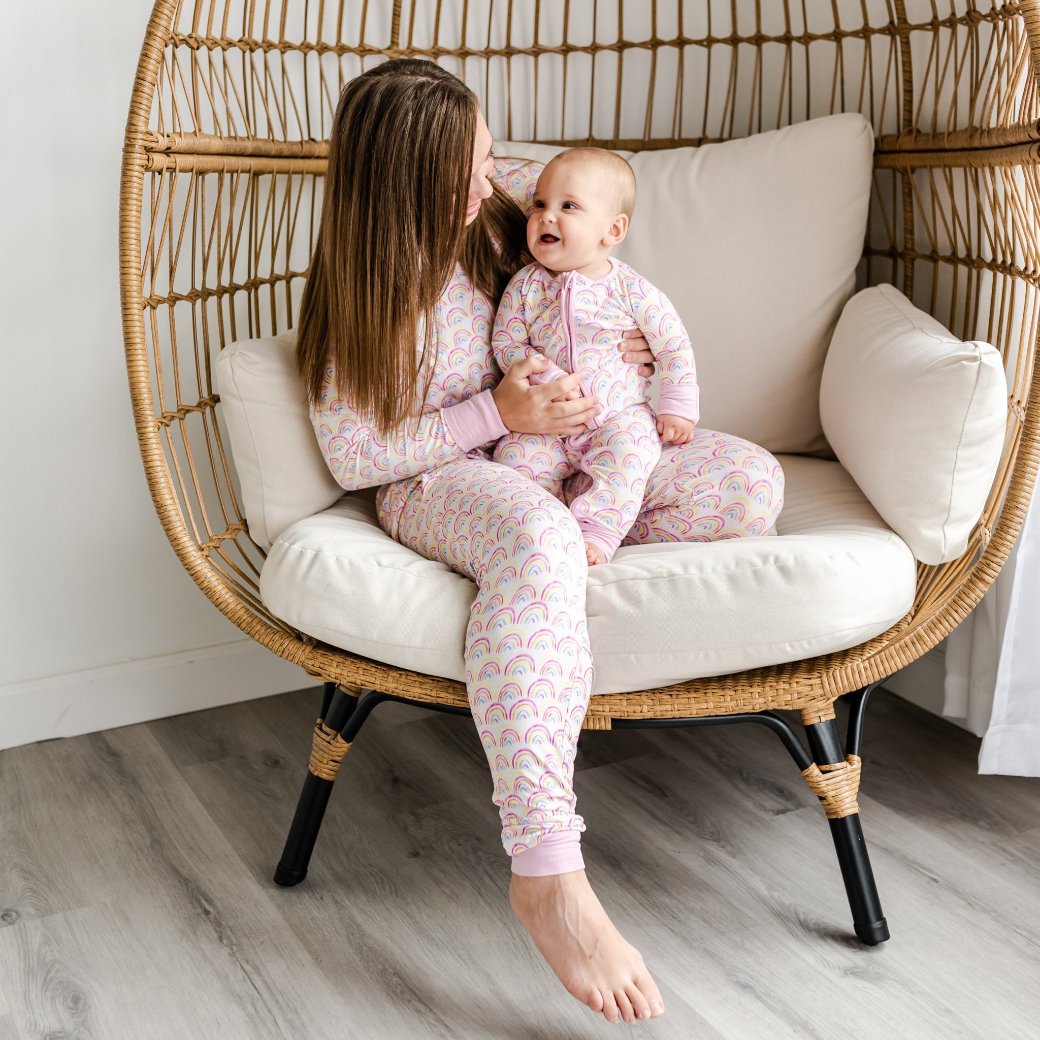 Snuggle up with the kiddos under countless dreamy rainbows! Crafted from our custom-milled Lunaluxe? Bamboo. these PJ Pants feature deep pockets. a comfy. stretchy waistband. and jogger-style cuffs. Pair it with the matching top to complete the set. then grab styles for matching with your little ones!