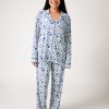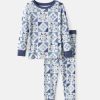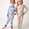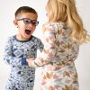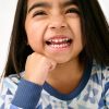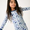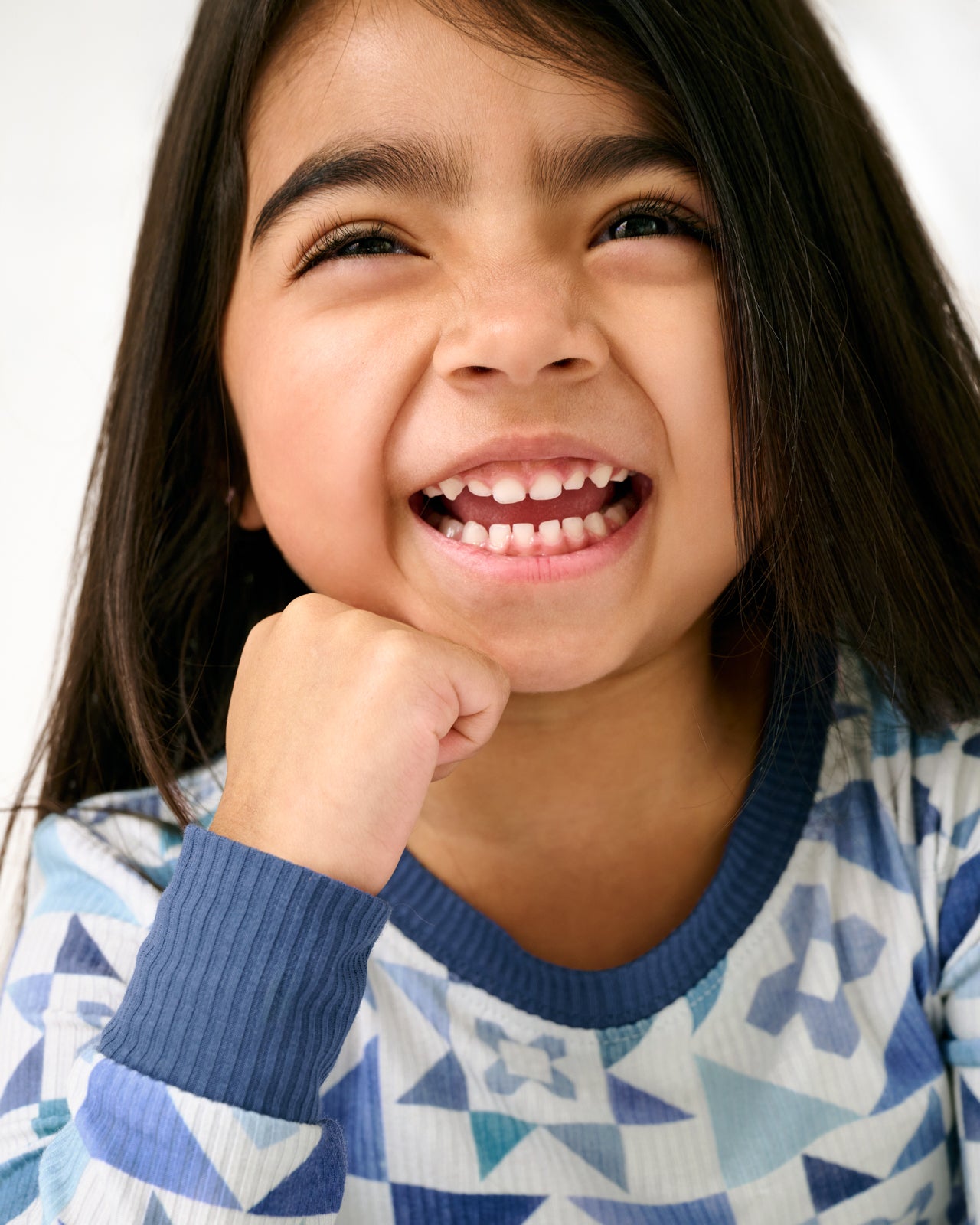Dream in shades of blue. The Patchwork Indigo Ribbed Two-Piece Pajama Set features a mosaic print in denim-inspired blues. Made from soft ribbed Lunaluxe® Bamboo. these bamboo pajamas have a long-sleeve top and matching pants designed with extra length to fit up to 3x longer. So perfect for family matching!