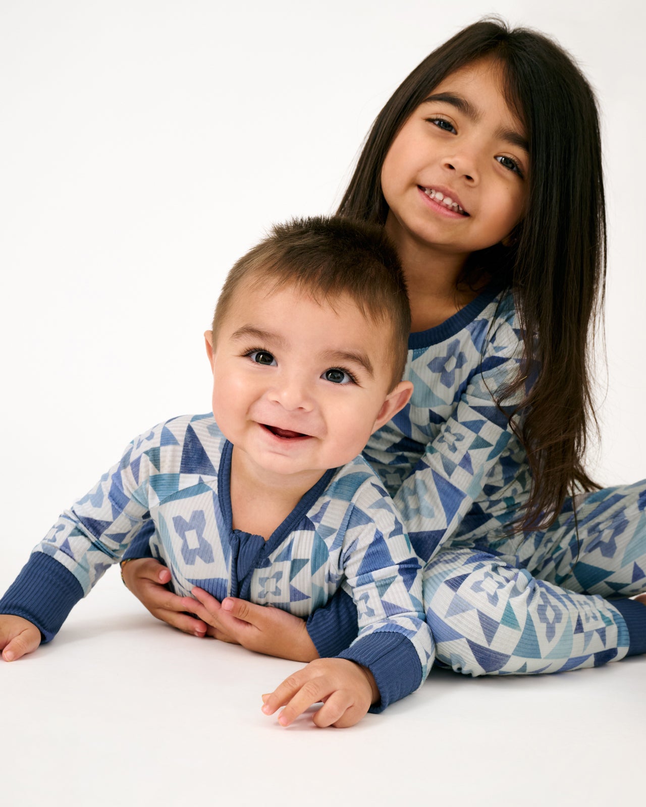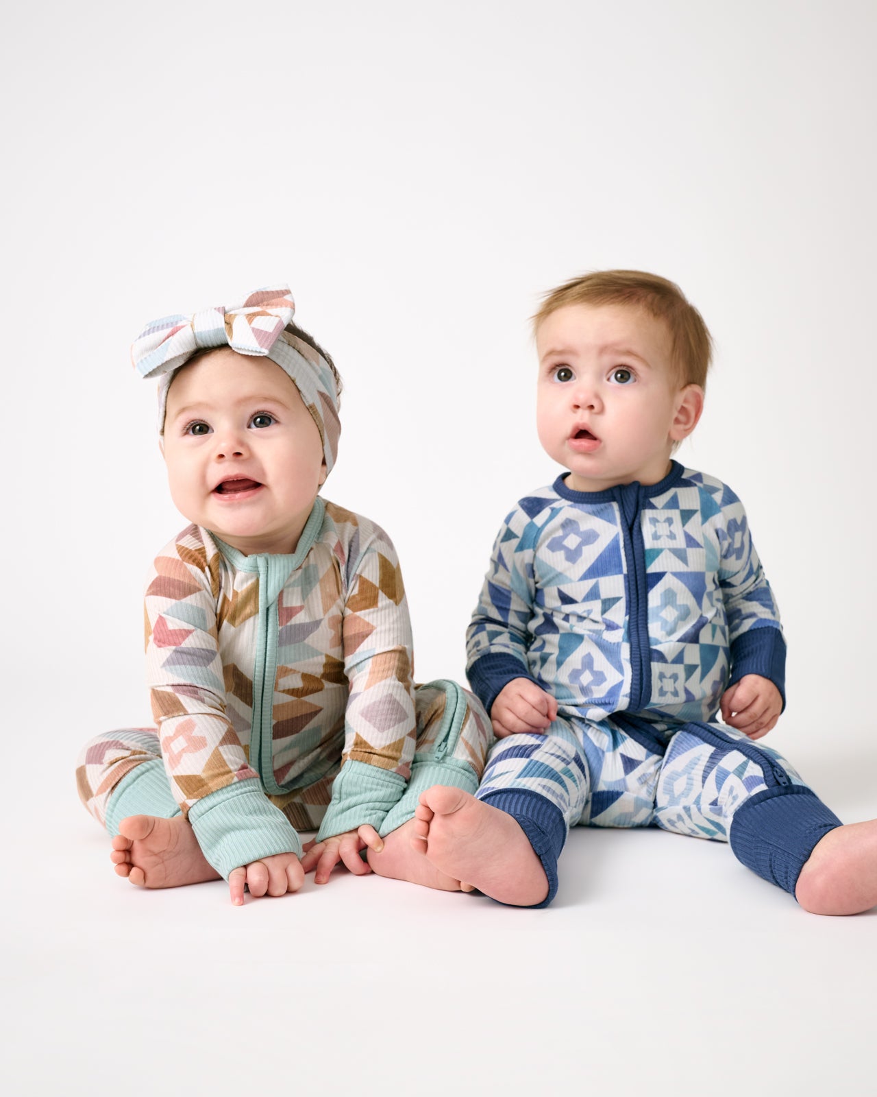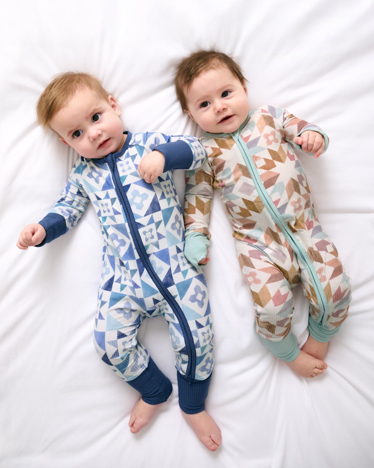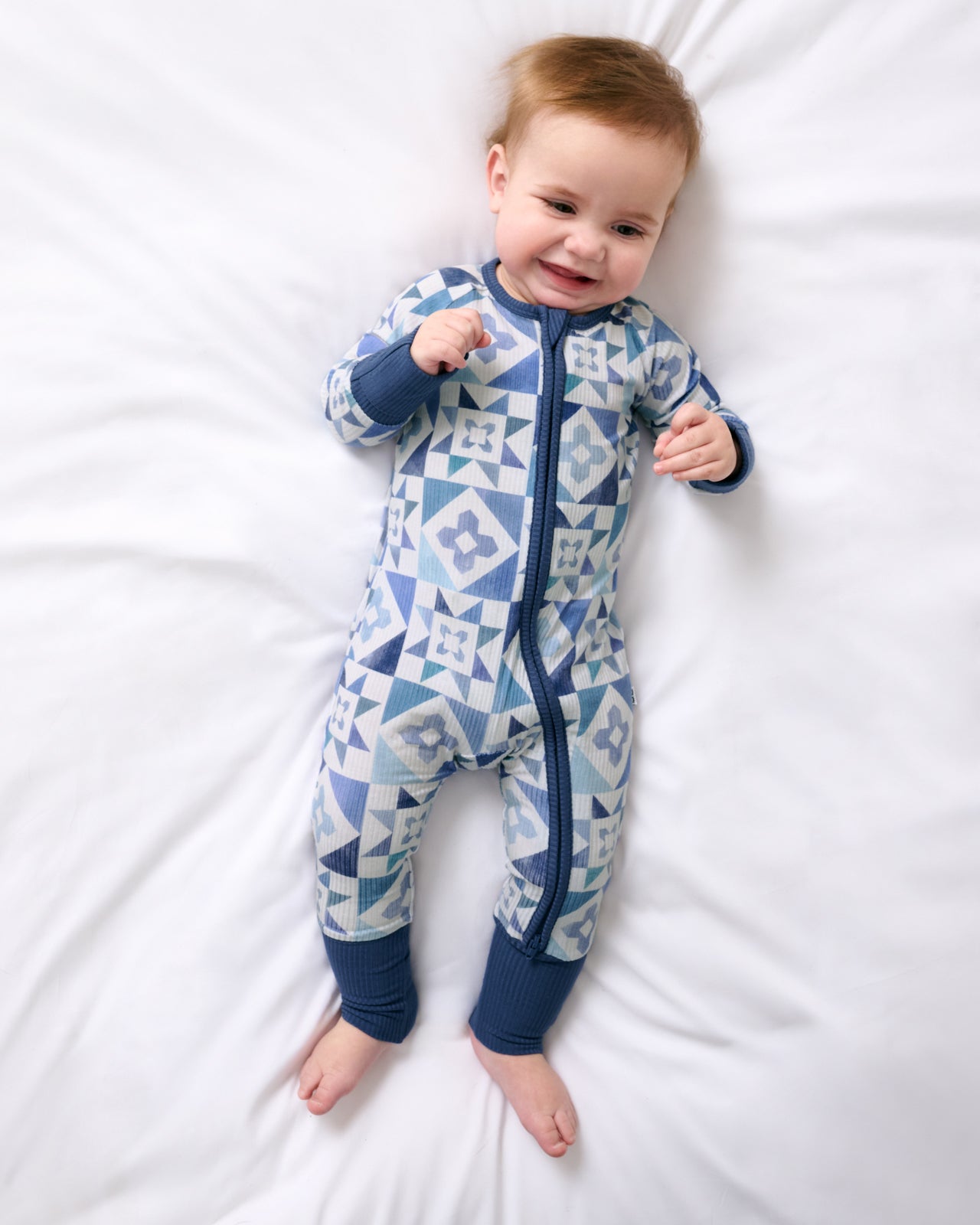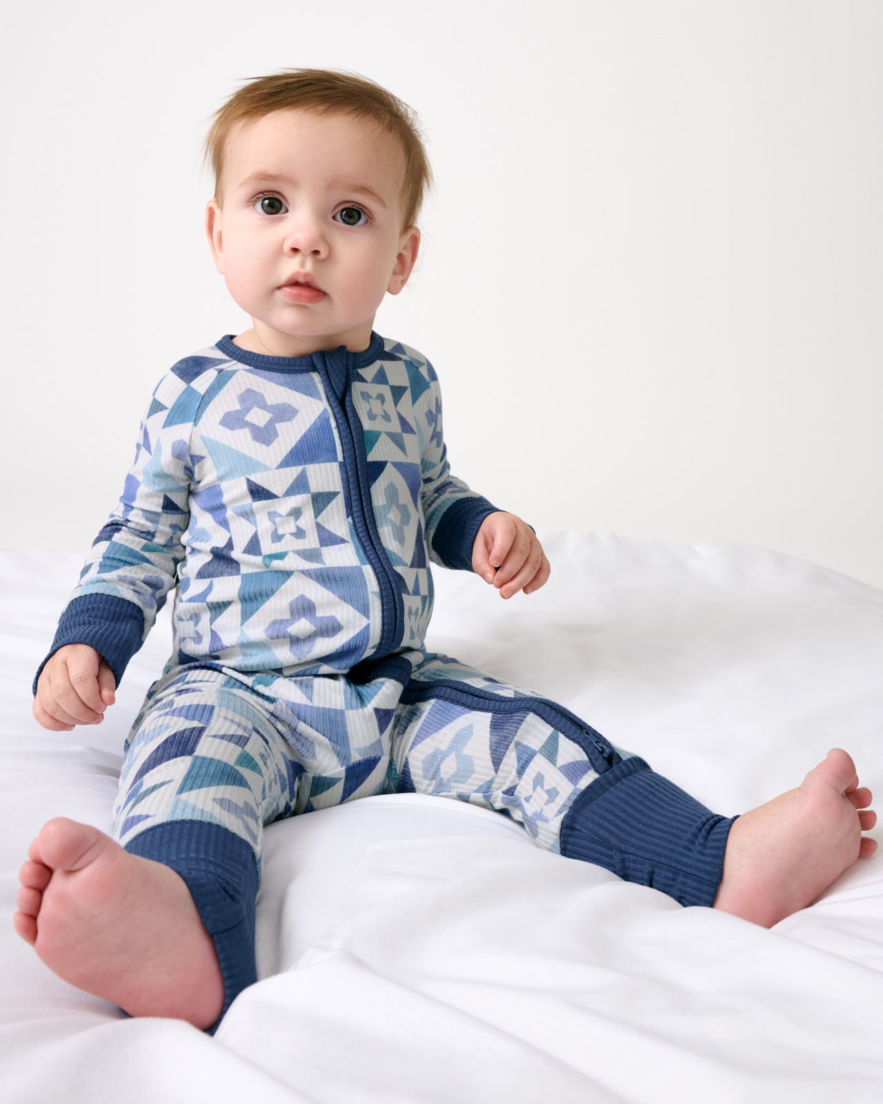 Dream in shades of blue. The Patchwork Indigo Ribbed Zippy features a mosaic print in denim-inspired hues your little one will love. Made from soft ribbed Lunaluxe® Bamboo that’s gentle on sensitive skin. this bamboo baby sleeper has fold-over mittens. foot cuffs. and a double zipper for easy changes. So perfect for family matching!