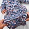 Falling for you. one petal at a time! The Petite Petals Infant Gown features tiny florals in sweet shades on a dreamy blue-gray backdrop. Made from soft Lunaluxe? Bamboo perfect for newborn clothes. this newborn gown has fold-over mittens for scratch-free sleep and an envelope sweep for easy diaper changes. Perfect for mama & me matching!