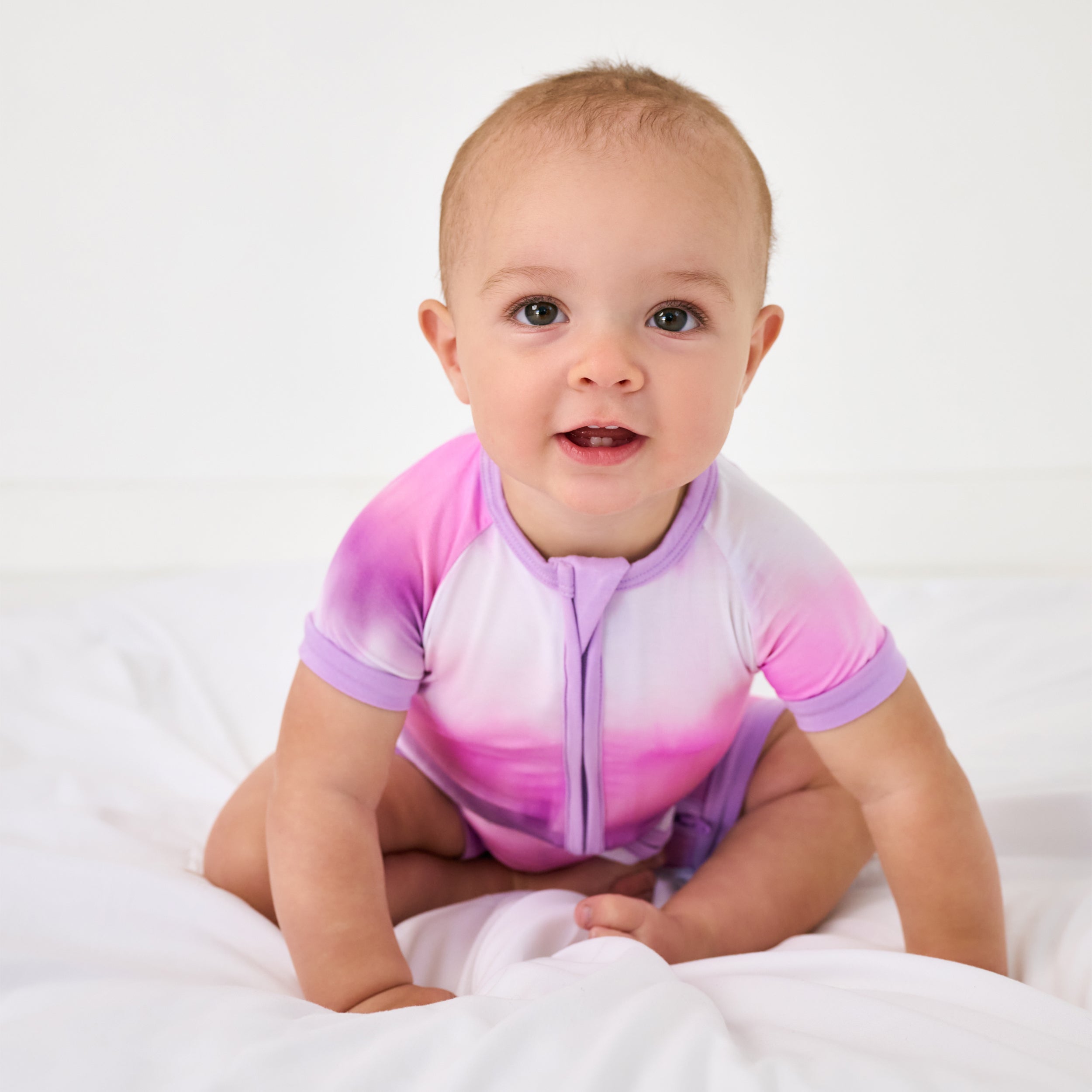 Drift off to sleep in soothing style! The Cosmic Mist Shorty Zippy brings dreamy vibes to bedtime with its pink ombré design. Made from our signature Lunaluxe® Bamboo that’s buttery soft and breathable. it features a double zipper for easy changes and is so ideal for warmer weather. Snag both colorways for the cutest sibling matching!