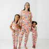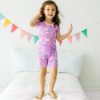 Best birthday PJs ever! Featuring giraffes. monkeys. elephants & more cute creatures celebrating on a pretty pink background. these PJs are made from buttery soft and stretchy Lunaluxe® Bamboo. The short sleeves are perfect for warmer weather. while the comfy pants are designed with extra length to fit up-to-3x longer. Snag styles for the whole fam!