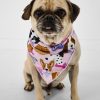The Pink Puppy Parade print features an eclectic mix of beloved dog faces ??including golden retrievers. corgis. poodles. dachshunds. and more ??nestled together on a soft pink background. Accessories like bandanas and bows add a charming spin. The trim is a darker shade of pink.