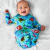 Snuggle up in an ocean of softness with the Disney’s Nemo’s Reef Infant Gown! Featuring Disney’s Nemo. Dory. and friends in a vibrant underwater scene. this newborn essential is made from buttery soft Lunaluxe® Bamboo that’s gentle on even the most delicate skin. Designed for easy diaper changes and restful sleep. it’s got fold-over mittens. a lap shoulder neckline. and a stretchy envelope sweep ??for the coziest sleep for your littlest fishie!