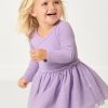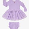Powder Lilac Ribbed Layered Tulle Dress with Bloomer
