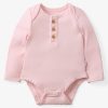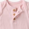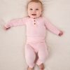 Every wiggle becomes a photo-worthy moment with this baby bodysuit. The Prima Pink Henley Bodysuit is made from durable Soluxe® Bamboo jersey with a snug fit and soothing touch. This adorable newborn bodysuit features lap shoulders for easy dressing and fold-over mittens to protect delicate skin from tiny scratches. Plus. snap closures make diaper changes a breeze. Comes in a bamboo keepsake bag that can double as a gift bag. We love it paired with the Prima Pink Fold-Over Legging!