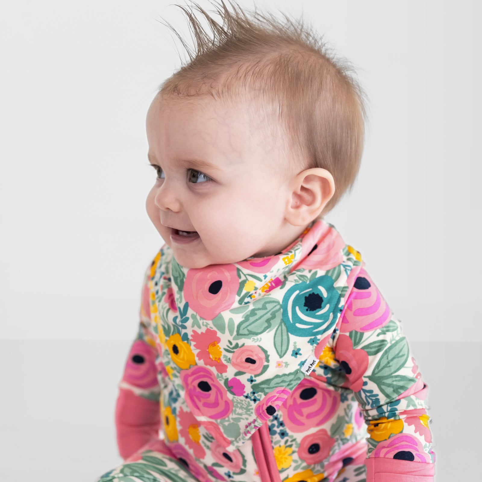 Floral fun meets cozy comfort! Crafted from a buttery soft bamboo blend. this Bandana Bib features a terry backing to keep your little one clean. Adjustable snaps ensure a comfy fit as your newborn grows into a toddler. We love it paired with the matching Zippy!